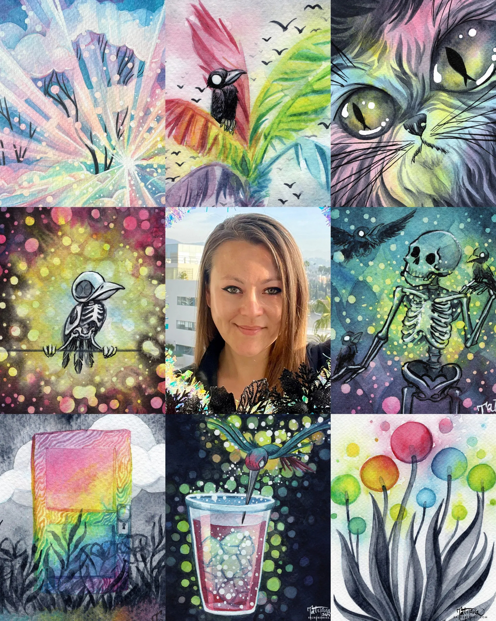 A fun visual escape of watercolor & ink paintings that balance between dark and light